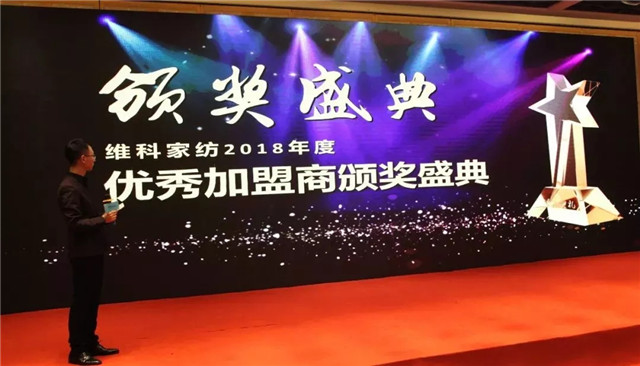10月25日晚,維科家紡在萬豪酒店舉辦了隆重的歡迎晚宴,熱烈歡迎來自全國各地家人們的到來,品牌事業部領導以及維科家紡總經理王吉鋒出席晚宴。晚宴上,維科家紡還對2018年度優秀加盟商進行了表彰。